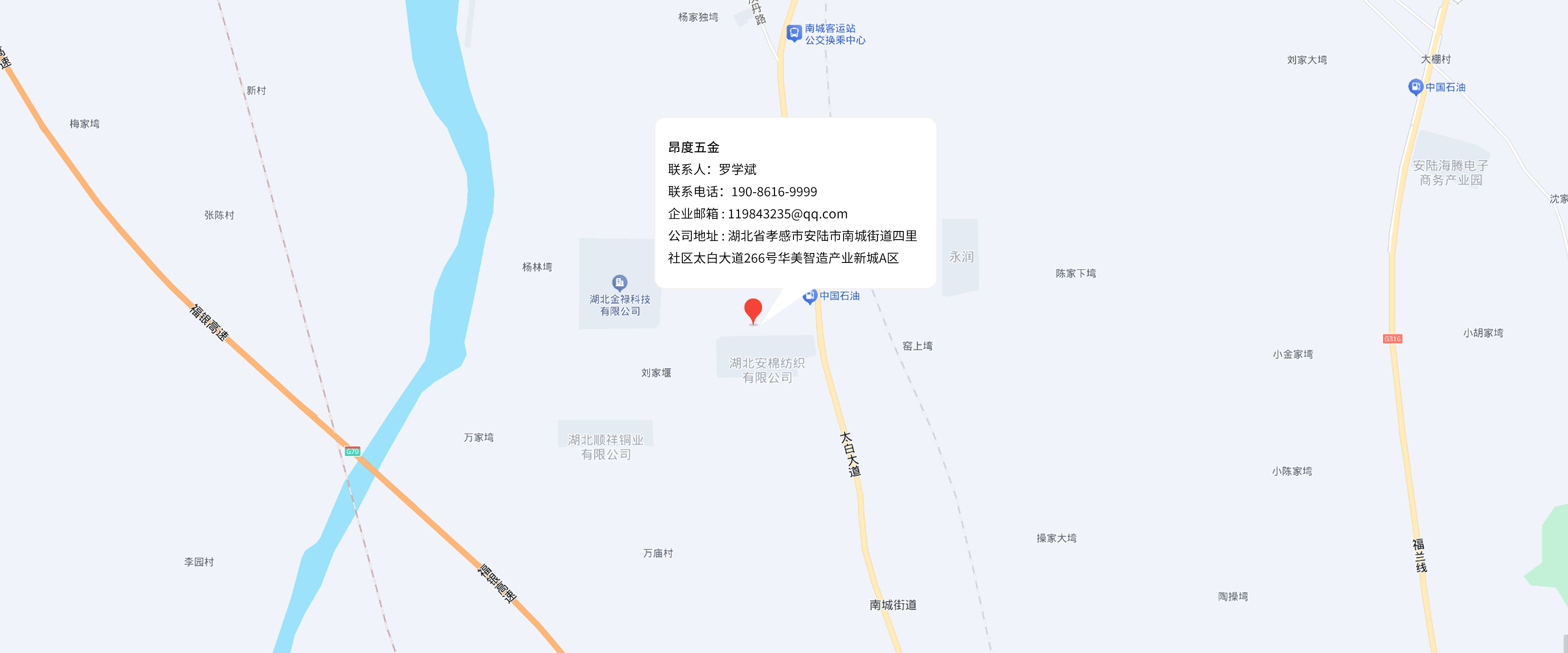 公司地址:湖北省孝感市安陆市南城街道四里社区太白大道266号华美智造产业新城A区